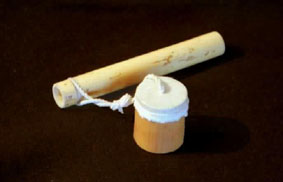 Brau: Tambour à friction. Fixée à la peau par une de ses extrémités, une baguette lisse frottée avec la main mouillée met la peau de l'instrument en vibration.