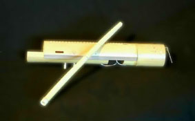 Rasclet: dit 'à géométrie variable'; râcloir en roseau et bambou dont la caisse de résonance mobile fait varier le timbre de l'instrument